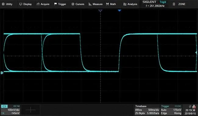 • SDS5034X supports up to 11 intelligent trigger types, which can quickly trigger signals with different characteristics. For example, using runt trigger (Runt) can quickly trigger at the set amplitude value.